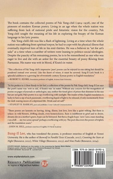 The book contains the collected poems of Pak Yong-ch¿l (1904-1938), one of the pioneers of modern Korean poetry. Living in an age when the whole nation was suffering from lack of national pride and futuristic vision for the country, Pak Yong-ch¿l sought the meaning of his life in exploring the beauty of the Korean language in his lyric poems. Pak Yong-ch¿l's life was like a flash of lightning. Living at a time when the whole nation was suffering from spiritual torpor, he had to cope with his physical illness that eventually deprived him of life in his mid-thirties. He was a believer in "art for art's sake" at a time when a number of writers were leaning to politico-social ideologies. Despite the paucity of his remaining poems, he is to be remembered as one who was eager to live and die with an ardor for the essential beauty of poesy flowing from Parnassus. His name was writ in blood, if Keats's in water.