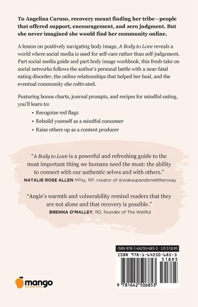 "To Angelina Caruso, recovery meant finding her tribe -- people that offered support, encouragement, and zero judgment. But she never imagined she would find her community online. A lesson on positively navigating body image, A Body to Love reveals a world where social media is used for self-care rather than self-judgement. Part social media guide and part body image workbook, this fresh take on social networks follows the author's personal battle with a near-fatal eating order, the online relationships that helped her heal, and the eventual community she cultivated. Featuring bonus charts, journal prompts, and recipes for mindful eating, you'll learn to: recognize red flags; rebuild yourself as a mindful consumer; raise others up as a content producer"-Back cover.