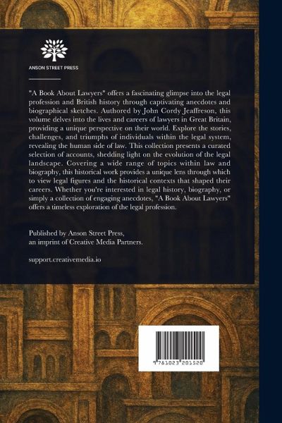 "A Book About Lawyers" offers a fascinating glimpse into the legal profession and British history through captivating anecdotes and biographical sketches. Authored by John Cordy Jeaffreson, this volume delves into the lives and careers of lawyers in Great Britain, providing a unique perspective on their world. Explore the stories, challenges, and triumphs of individuals within the legal system, revealing the human side of law. This collection presents a curated selection of accounts, shedding light on the evolution of the legal landscape. Covering a wide range of topics within law and biography, this historical work provides a unique lens through which to view legal figures and the historical contexts that shaped their careers. Whether you're interested in legal history, biography, or simply a collection of engaging anecdotes, "A Book About Lawyers" offers a timeless exploration of the legal profession. This work has been selected by scholars as being culturally important, and is part of the knowledge base of civilization as we know it. This work is in the public domain in the United States of America, and possibly other nations. Within the United States, you may freely copy and distribute this work, as no entity (individual or corporate) has a copyright on the body of the work. Scholars believe, and we concur, that this work is important enough to be preserved, reproduced, and made generally available to the public. We appreciate your support of the preservation process, and thank you for being an important part of keeping this knowledge alive and relevant.