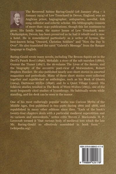 A historical adventure novel by S. Baring-Gould about Cornwall, England it's history, landscape, and political past. About the author The Reverend Sabine Baring-Gould (28 January 1834 - 2 January 1924) of Lew Trenchard in Devon, England, was an Anglican priest, hagiographer, antiquarian, novelist, folk song collector and eclectic scholar. His bibliography consists of more than 1240 publications, though this list continues to grow. His family home, the manor house of Lew Trenchard, near Okehampton, Devon, has been preserved as he had it rebuilt and is now a hotel. He is remembered particularly as a writer of hymns, the best-known being "Onward, Christian Soldiers" and "Now the Day Is Over". He also translated the carol "Gabriel's Message" from the Basque language to English. Baring-Gould wrote many novels, including The Broom-Squire set in the Devil's Punch Bowl (1896), Mehalah: a story of the salt marshes (1880), Guavas the Tinner (1897), the 16-volume The Lives of the Saints, and the biography of the eccentric poet-vicar of Morwenstow, Robert Stephen Hawker. He also published nearly 200 short stories in assorted magazines and periodicals. Many of these short stories were collected together and republished as anthologies, such as his Book of Ghosts (1904), Dartmoor Idyllys (1896), and In a Quiet Village (1900). His folkloric studies resulted in The Book of Were-Wolves (1865), one of the most frequently cited studies of lycanthropy. He habitually wrote while standing, and his desk can be seen in the manor. One of his most enduringly popular works was Curious Myths of the Middle Ages, first published in two parts during 1866 and 1868, and republished in many other editions since then. "Each of the book's twenty-four chapters deals with a particular medieval superstition and its variants and antecedents," writes critic Steven J. Mariconda. H. P. Lovecraft termed it "that curious body of medieval lore which the late Mr. Baring-Gould so effectively assembled in book form." ... (wikipedia.org)