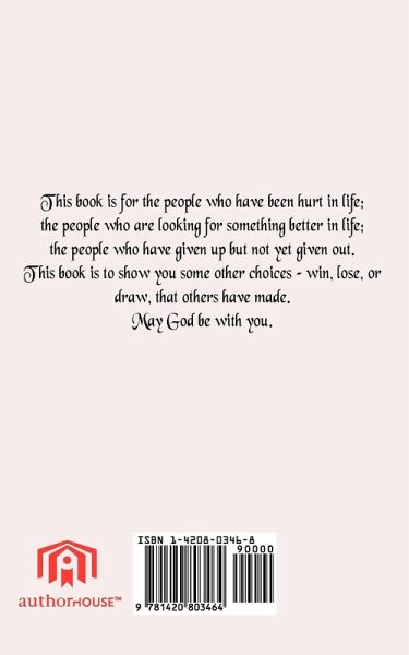 This book is for the people who have been hurt in life; the people who are looking for something better in life; the people who have given up but not yet given out. This book is to show you some other choices - win, lose, or draw, that others have made. May God be with you.
