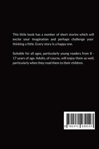 This little book has a number of short stories which will excite your imagination and perhaps challenge your thinking a little. Every story is a happy one. Suitable for all ages, particularly young readers from 8 - 17 years of age. Adults, of course, will enjoy them as well. Parents who love reading to their children will love this book.