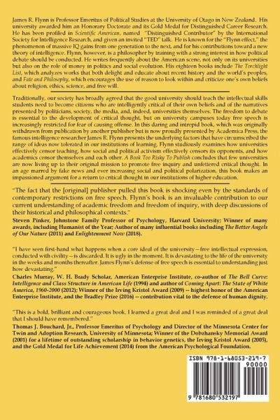 Examines how universities effectively censor teaching, how social and political activism effectively censors its opponents, and how academics censor themselves and each other. A Book Too Risky To Publish concludes that few universities are now living up to their original mission to promote free inquiry and unfettered critical thought.