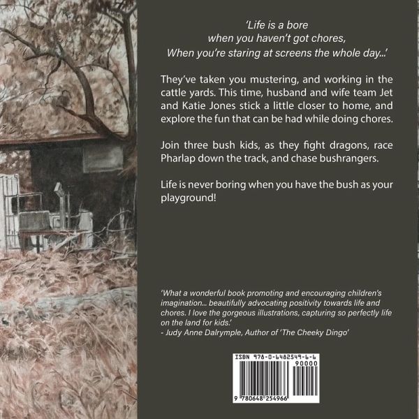 'Life is a bore when you haven't got chores, When you're staring at screens the whole day...' They've taken you mustering, and working in the cattle yards. This time, husband and wife team Jet and Katie Jones stick a little closer to home, and explore the fun that can be had while doing chores. Join three bush kids, as they fight dragons, race Pharlap down the track, and chase bushrangers. Life is never boring when you have the bush as your playground!