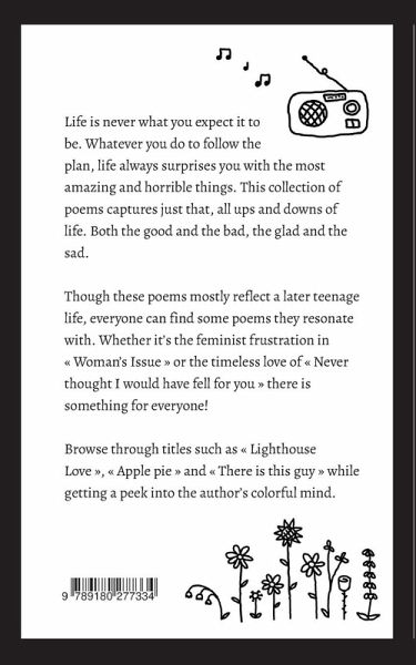 Life is never what you expect it to be. Whatever you do to follow the plan, life always surprises you with the most amazing and horrible things. This collection of poems captures just that, all ups and downs of life. Both the good and the bad, the glad and the sad.Though these poems mostly reflect a later teenage life, everyone can find some poems they resonate with. Whether it's the feminist frustration in « Woman's issue » or the timeless love of «Never thought I would have fell for you » there is something for everyone!Browse through titles such as « Lighthouse Love », « Apple pie » and « There is this guy » while getting a peek into the author's colorful mind.