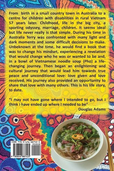 From birth in a small country town in Australia to a centre for children with disabilities in rural Vietnam 57 years later. Childhood, life in the big city, a sporting odyssey, marriage, children. It seems ideal but life never really is that simple. During his time in Australia Terry was confronted with many light and dark moments and some difficult decisions to make. Unbeknown at the time, he would find a book that was to change his mindset, experiencing a revelation that would change who he was or wanted to be and, in a bowl of Vietnamese noodle soup (Pho) a life-changing journey. Then began an enlightening and cultural journey that would lead him towards true peace and unconditional love: love given, and love received. His journey also provided an opportunity to share that love with many others. This is his life story, to date. "I may not have gone where I intended to go, but I think I have ended up where I needed to be" Douglas Adams