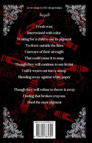 In her debut poetry collection, Anna encapsulates the feelings and fears that come with growing up and how we change as we prepare to leave the nest. She uses a crayon as a metaphor for the storyline of life that we all must weave through. Anna takes the reader down a path of nostalgia and helps them to come to terms with what it means to find yourself through your inner child along the path of life, which we all must walk. "I reside in a box of crayons Not yet tampered Or disturbed Bonded to the distinct colors of childhood Scents that never fail to set me free I smell of chalk Etched into a late summer's evening That leaves marks of blended color on my hands I smell of my first soccer goal On an early Saturday morning Leaving victory in my skin Along with the stains of adrenaline on my knees I smell of colors I was not born with But learned to mix myself" - From A Box of Broken Crayons