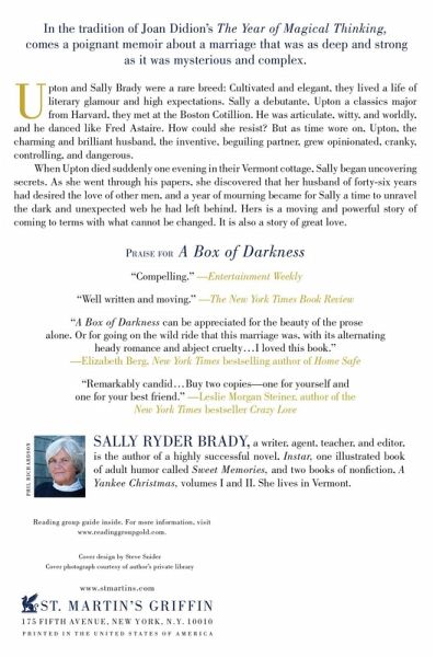 In the tradition of Joan Didion's The Year of Magical Thinking, comes a poignant memoir about a marriage that was as deep and strong as it was mysterious and complex Upton and Sally Brady were a rare breed: cultivated and elegant, they lived a life of literary glamour and high expectations. Sally a debutante; Upton a classics major from Harvard, they met at the Boston Cotillion. He was articulate, witty, and worldly, and he danced like Fred Astaire. How could she resist? Despite raising four children on Upton's modest wage as the editor-in-chief of the Atlantic Monthly Press, theirs was a world of champagne, sailboats, private islands, famous writers, family rituals, and ice-cold martinis. They lived life on their terms. But as time wore on, Upton, the charming and brilliant husband, the inventive, beguiling partner, grew opinionated, cranky, controlling, and dangerous. When Upton died suddenly one evening in their Vermont cottage, Sally began uncovering secrets. As she went through his papers, she discovered that her husband of forty-six years had desired the love of other men. Her riveting, charismatic husband was not quite the man he appeared to be, and a year of mourning became for Sally a time to unravel the dark and unexpected web he had left behind. Hers is a moving and powerful story of coming to terms with what cannot be changed. It is also a story of great love.