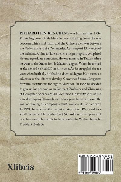 Richard Tien-Ren Cheng was born in June 1934. Since the age of three, he had been suffering from the war between China and Japan and the Chinese civil war between the nationalists and the communists. He moved frequently to escape the war and suffered immensely from losing his close relatives. At the age of fifteen, he escaped the mainland China to Taiwan, where he grew up and completed his undergraduate education. He was married in Taiwan. When he decided to go to the States for his master's degree, he left his wife, a son, and another son. When he arrived at the school, he had thirty dollars to his name. He struggled for ten years in between studying and working. When he finally finished his doctoral degree, he became an educator in the effort to develop computer science programs for various institutions of higher education. He was promoted from assistant professor to associate professor to full professorship in six years and to eminent professorship in another three years. In 1985, he decided to give up his position as an eminent professor and chairman of computer science at Old Dominion University to establish a small company. Through less than five years of struggle, he achieved the goal of making it a multimillion-dollar company. In 1991, he received the largest contract the IRS awarded to a small company, which was for $240 million over six years. He has been active in the Organization of Chinese Americans, the Committee of 100, and the Chinese-American Foundation for Americans. He also has done a lot of philanthropic work that benefit to several universities.