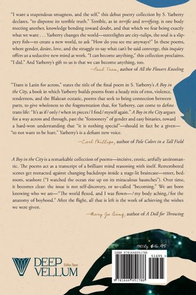 In this debut collection of poetry, the obscure and mundane collide, a fricassee of movement, the cosmopolitan, and intimacy. A Boy in the City uses poems as pillars to interrupt and excavate an interiority that unfolds and interrogates grim thoughts and intimacy. Yarberry weaves a sexy, glitzy journey through their city, where the speaker can "pose" and "compose" in a "trans way, of course." Clever in its playful allusions to Greek myths, William Blake, and other literary figures, A Boy in the City is a distinct work of joy and liberation that reckons with the language of gender and desire.--Goodreads.