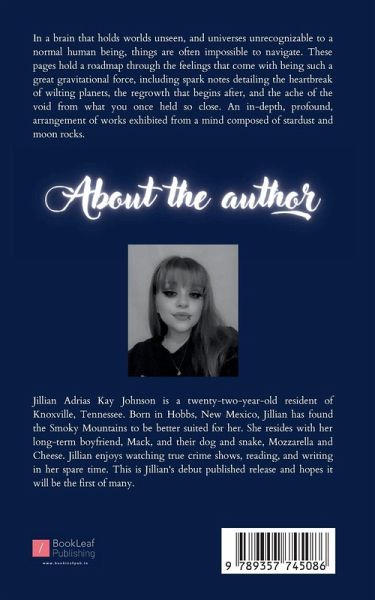 In a brain that holds worlds unseen, and universes unrecognizable to a normal human being, things are often impossible to navigate. These pages hold a roadmap through the feelings that come with being such a great gravitational force, including spark notes detailing the heartbreak of wilting planets, the regrowth that begins after, and the ache of the void from what you once held so close. An in-depth, profound, arrangement of works exhibited from a mind composed of stardust and moon rocks.