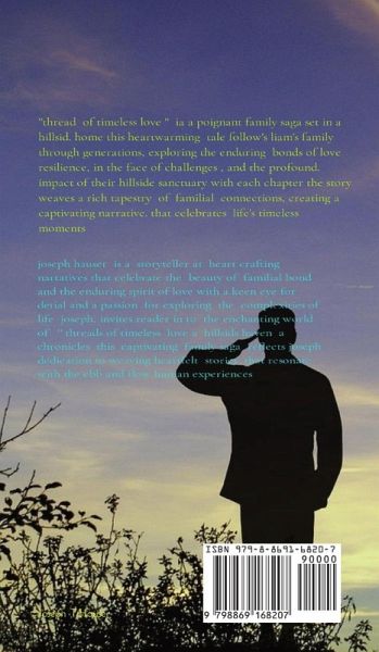 Embark on a heartfelt journey through the captivating pages of 'Threads of Timeless Love: A Hillside Haven Chronicles.' This enchanting novel unfolds the poignant tale of Liam and his family, whose lives are intricately woven into the tapestry of a hillside home. As seasons change, love blossoms, and generations unfold, the hillside sanctuary becomes a witness to laughter, triumphs, and enduring familial bonds. Explore the threads of love, growth, and the timeless spirit that defines this extraordinary family saga. The Magic Blanket, a silent witness to the family's joys and trials, cradles the essence of a sanctuary where memories echo through wooden walls and starlit skies hold the secrets of a rich familial legacy. 'Threads of Timeless Love' is a celebration of familial connections, the beauty of shared moments, and the enduring strength of love that persists through the passage of time. Join the family as they navigate life's journey within the comforting embrace of their hillside haven, where every rustle of leaves tells a story, and every chapter is a testament to the enduring threads of love that bind them together."