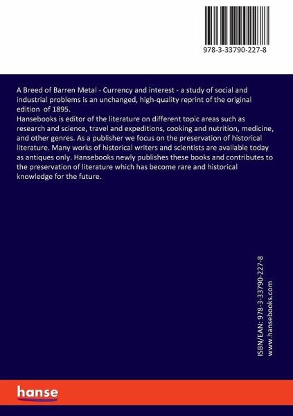 A Breed of Barren Metal - Currency and interest - a study of social and industrial problems is an unchanged, high-quality reprint of the original edition of 1895. Hansebooks is editor of the literature on different topic areas such as research and science, travel and expeditions, cooking and nutrition, medicine, and other genres. As a publisher we focus on the preservation of historical literature. Many works of historical writers and scientists are available today as antiques only. Hansebooks newly publishes these books and contributes to the preservation of literature which has become rare and historical knowledge for the future.