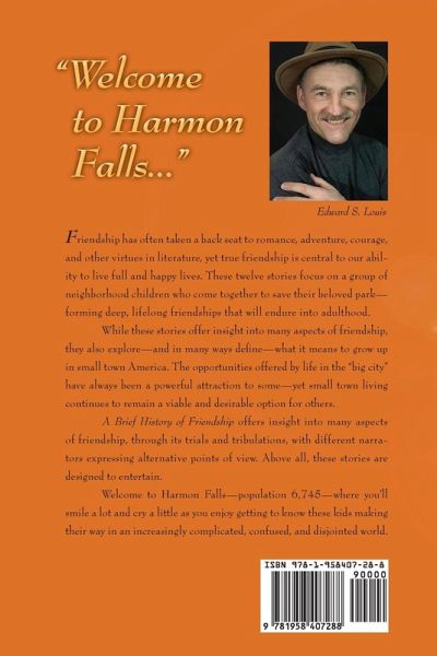 Friendship has often taken a back seat to romance, adventure, courage, and other virtues in literature, yet true friendship is central to our ability to live full and happy lives. These twelve stories focus on a group of neighborhood children who come together to save their beloved park-forming deep, lifelong friendships that will endure into adulthood. While these stories offer insight into many aspects of friendship, they also explore-and in many ways define-what it means to grow up in small town America. The opportunities offered by life in the "big city" have always been a powerful attraction to some-yet small town living continues to remain a viable and desirable option for others. A Brief History of Friendship offers insight into many aspects of friendship, through its trials and tribulations, with different narrators expressing alternative points of view. Above all, these stories are designed to entertain. Welcome to Harmon Falls-population 6,745-where you'll smile a lot and cry a little as you enjoy getting to know these kids making their way in an increasingly complicated, confused, and disjointed world.