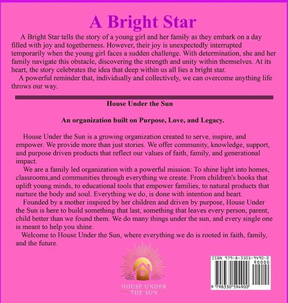 A Bright Star tells the story of a young girl and her family as they embark on a day filled with joy and togetherness. However, their joy is unexpectedly interrupted temporarily when the young girl faces a sudden challenge. With determination, she and her family navigate this obstacle, discovering the strength and unity within themselves. At its heart, the story celebrates the idea that deep within us all lies a bright star. A powerful reminder that, individually and collectively, we can overcome anything life throws our way.