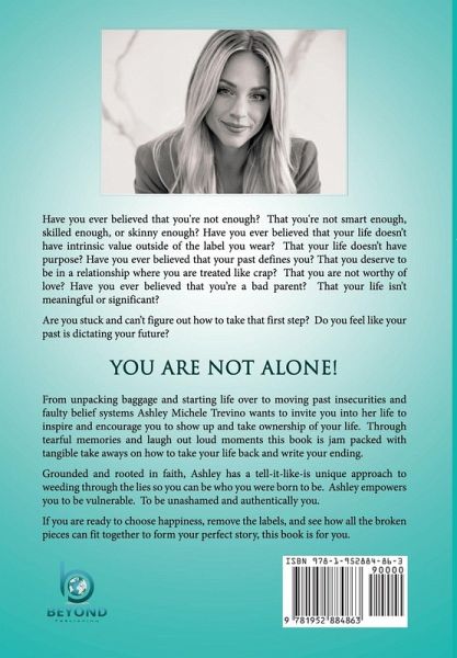 Ashley owes her publisher money. Have you ever believed that you're not enough? That you're not smart enough, skilled enough, or skinny enough? Have you ever believed that your life doesn't have intrinsic value outside of the label you wear? That your life doesn't have purpose? Have you ever believed that your past defines you? That you deserve to be in a relationship where you are treated like crap? That you are not worthy of love? Have you ever believed that you're a bad parent? That your life isn't meaningful or significant? Are you stuck and can't figure out how to take that first step? Do you feel like your past is dictating your future? YOU ARE NOT ALONE! From unpacking baggage and starting life over to moving past insecurities and faulty belief systems Ashley Michele Trevino wants to invite you into her life to inspire and encourage you to show up and take ownership of your life. Through tearful memories and laugh out loud moments this book is jam packed with tangible take aways on how to take your life back and write your ending. Grounded and rooted in faith, Ashley has a tell-it-like-is unique approach to weeding through the lies so you can be who you were born to be. Ashley empowers you to be vulnerable. To be unashamed and authentically you. If you are ready to choose happiness, remove the labels, and see how all the broken pieces can fit together to form your perfect story, this book is for you.