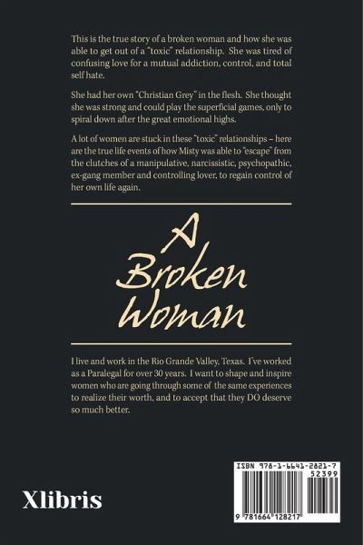 This is the true story of a broken woman and how she was able to get out of a "toxic" relationship. She was tired of confusing love for a mutual addiction, control, and total self hate. She had her own "Christian Grey" in the flesh. She thought she was strong and could play the superficial games, only to spiral down after the great emotional highs. A lot of women are stuck in these "toxic" relationships - here are the true life events of how Misty was able to "escape" from the clutches of a manipulative, narcissistic, psychopathic, ex gang member and controlling lover, to regain control of her own life again.
