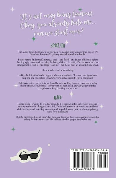 It's not easy being famous. Okay, you already hate me...can we start over? Sinclair I'm Sinclair Jones, best known for playing a woman ten years younger than me on TV. Or at least I was until I quit my job and moved to Asheville. I came here to find myself. Instead, I tried-and failed-at a bunch of hobbies before landing a gig I don't suck at: being the fake girlfriend of a reality TV outdoorsman. Our arrangement is great for my image-and his-but there's been an unwanted side-effect. I have a stalker, and he's escalating. Luckily, the Fairy Godmother Agency, a husband and wife P.I. team, have signed on to help me find my stalker. Unluckily, everyone has insisted I hire a bodyguard. Rafe is obnoxious and opinionated, and he calls me Clay because I once threw a clay banana at him. (Yes, literally.) I don't want his help, and I especially don't want this compulsion to keep checking out his arms. Rafe The last thing I want to do is follow around a TV starlet, but I'm in between jobs, and I have my reasons for taking this one. Still, I'm in hell, sitting in on manicures and book club meetings, and watching romcoms with a spoiled screen princess who's surprisingly naïve for a millionaire. But the more time I spend with Clay, the more desperate I am to protect her, because I'm falling for her charm-just like millions of other people have before me.
