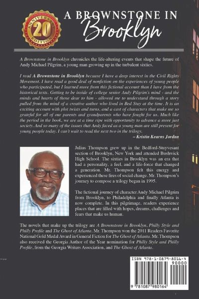 A Brownstone In Brooklyn chronicles the life-altering events that shape the future of Andy Michael Pilgrim, a young man growing up in the turbulent sixties. This novel provided a nice look into New York City during a historic time of change. Thompson pens crisp and clear sentences that provides vivid imagery. It reveals a first hand account of someone who did experience that time in New York City during the race riots. It shows how far America has come in healing the past's wounds.