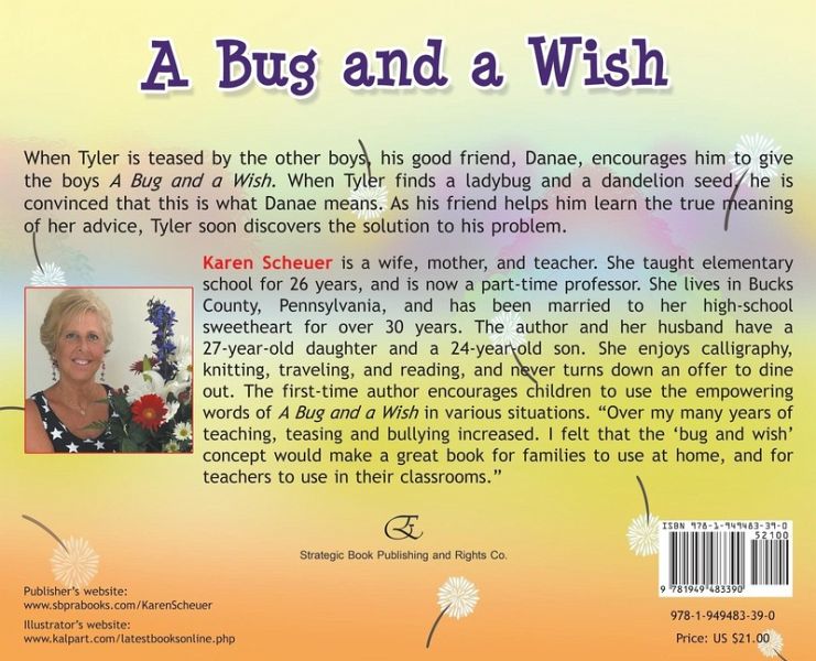 "When Tyler is teased by the other boys, his good friend, Danae, encourages him to give the boys a bug and a wish. When Tyler finds a ladybug and a dandelion seed, he is convinced that this is what Danae means. As his friend helps him learn the true meaning of her advice, Tyler soon discovers the solution to his problem."--Page 4 of cover.