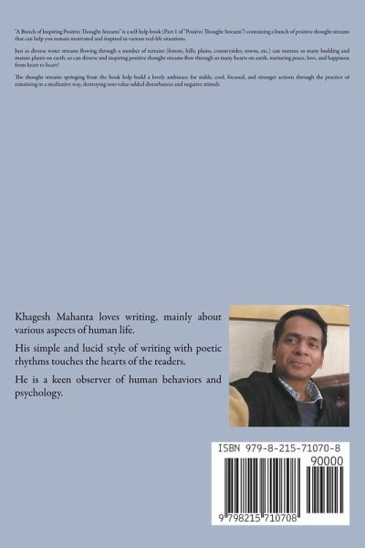 Just as diverse water streams flowing through a number of terrains (forests, hills, plains, countrysides, towns, etc.) can nurture so many budding and mature plants on earth, so can diverse and inspiring positive thought streams flow through so many hearts on earth, nurturing peace, love, and happiness from heart to heart! The thought streams springing from the book help build a lovely ambiance for stable, cool, focused, and stronger actions through the practice of remaining in a meditative way, destroying non-value-added disturbances and negative stimuli.