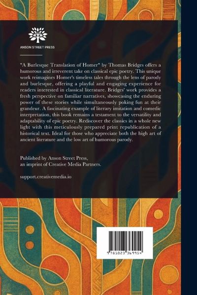 "A Burlesque Translation of Homer" by Thomas Bridges offers a humorous and irreverent take on classical epic poetry. This unique work reimagines Homer's timeless tales through the lens of parody and burlesque, offering a playful and engaging experience for readers interested in classical literature. Bridges' work provides a fresh perspective on familiar narratives, showcasing the enduring power of these stories while simultaneously poking fun at their grandeur. A fascinating example of literary imitation and comedic interpretation, this book remains a testament to the versatility and adaptability of epic poetry. Rediscover the classics in a whole new light with this meticulously prepared print republication of a historical text. Ideal for those who appreciate both the high art of ancient literature and the low art of humorous parody. This work has been selected by scholars as being culturally important, and is part of the knowledge base of civilization as we know it. This work is in the public domain in the United States of America, and possibly other nations. Within the United States, you may freely copy and distribute this work, as no entity (individual or corporate) has a copyright on the body of the work. Scholars believe, and we concur, that this work is important enough to be preserved, reproduced, and made generally available to the public. We appreciate your support of the preservation process, and thank you for being an important part of keeping this knowledge alive and relevant.
