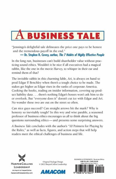 Much needed in these times when confidence in corporations has eroded, A Business Tale offers you the inspiration to make ethical choices even when it isn't easy or immediately rewarding. Wouldn't it be nice if all executives had a magical rabbit?like the one in the movie Harvey -- following them around reminding them to be ethical? In this charming fable, Aristotle (Ari, for short) is a pooka -- a mythical, invisible creature with a penchant for advising against dishonesty. Our hero, Edgar P. Benchley, has been able to see and hear Ari since childhood, and as he journeys through his professional life, constantly faced with challenging questions of good conduct, Ari helps remind him that nice guys can succeed...even in the world of business. Following the story, inside this book you'll find: real-life examples of ethical situations a 10-step action plan for ethical behavior in the workplace story formatting to impart basics of ethics in the business world A Business Tale is an easy-to-read, unforgettable "spoonful of sugar" to help companies and individuals digest the sometimes tart lessons of practical morality in the workplace.