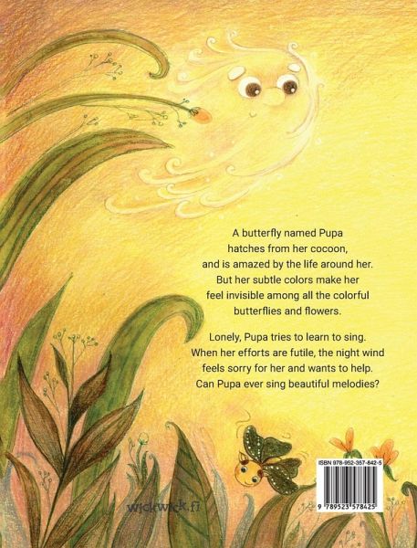 A butterfly named Pupa hatches from her cocoon, and is amazed by the life around her. But her subtle colors make her feel invisible among all the colorful butterflies and flowers. Lonely, Pupa tries to learn to sing. When her efforts are futile, the night wind feels sorry for her and wants to help. Can Pupa ever sing beautiful melodies?