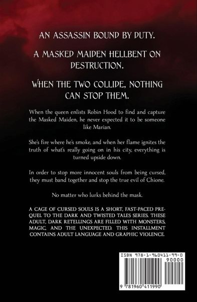 An Assassin bound by duty. A Masked Maiden hellbent on destruction. When the two collide, nothing can stop them. When the queen enlists Robin Hood to find and capture the Masked Maiden, he never expected it to be someone like Marian. She's fire where he's smoke, and when her flame ignites the truth of what's really going on in his city, everything is turned upside down. In order to stop more innocent souls from being cursed, they must band together and stop the true evil of Chione. No matter who lurks behind the mask. A Cage of Cursed Souls is a short, fast-paced prequel to the Dark and Twisted Tales series. These adult, dark retellings are filled with monsters, magic, and the unexpected. This installment contains adult language and graphic violence.