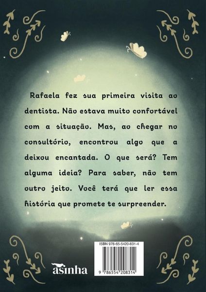 Rafaela fez sua primeira visita ao dentista. Não estava muito confortável com a situação. Mas, ao chegar no consultório, encontrou algo que a deixou encantada. O que será? Tem alguma ideia? Para saber, não tem outro jeito. Você terá que ler essa história que promete te surpreender.