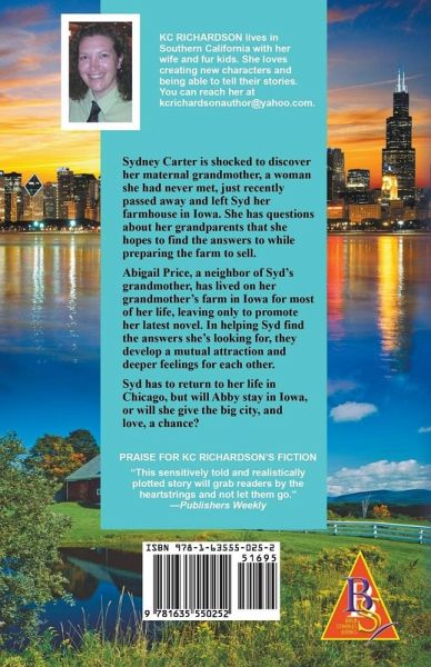 Sydney Carter is shocked to discover her maternal grandmother, a woman she had never met, just recently passed away and left Syd her farmhouse in Iowa. She has questions about her grandparents that she hopes to find the answers to while preparing the farm to sell. Abigail Price, a neighbor of Syd's grandmother, has lived on her grandmother's farm in Iowa for most of her life, leaving only to promote her latest novel. In helping Syd find the answers she's looking for, they develop a mutual attraction and deeper feelings for each other. Syd has to return to her life in Chicago, but will Abby…mehr