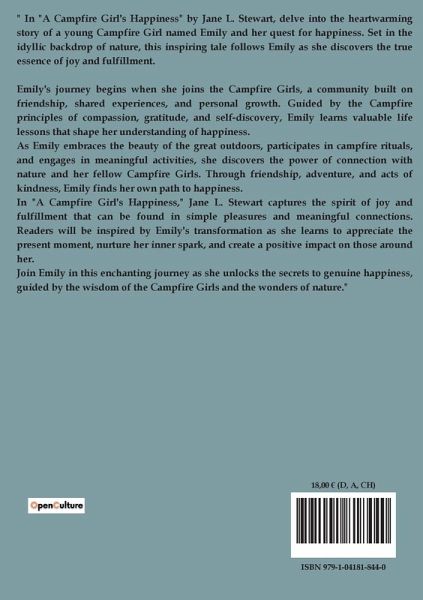 " In "A Campfire Girl's Happiness" by Jane L. Stewart, delve into the heartwarming story of a young Campfire Girl named Emily and her quest for happiness. Set in the idyllic backdrop of nature, this inspiring tale follows Emily as she discovers the true essence of joy and fulfillment. Emily's journey begins when she joins the Campfire Girls, a community built on friendship, shared experiences, and personal growth. Guided by the Campfire principles of compassion, gratitude, and self-discovery, Emily learns valuable life lessons that shape her understanding of happiness. As Emily embraces the beauty of the great outdoors, participates in campfire rituals, and engages in meaningful activities, she discovers the power of connection with nature and her fellow Campfire Girls. Through friendship, adventure, and acts of kindness, Emily finds her own path to happiness. In "A Campfire Girl's Happiness," Jane L. Stewart captures the spirit of joy and fulfillment that can be found in simple pleasures and meaningful connections. Readers will be inspired by Emily's transformation as she learns to appreciate the present moment, nurture her inner spark, and create a positive impact on those around her. Join Emily in this enchanting journey as she unlocks the secrets to genuine happiness, guided by the wisdom of the Campfire Girls and the wonders of nature."