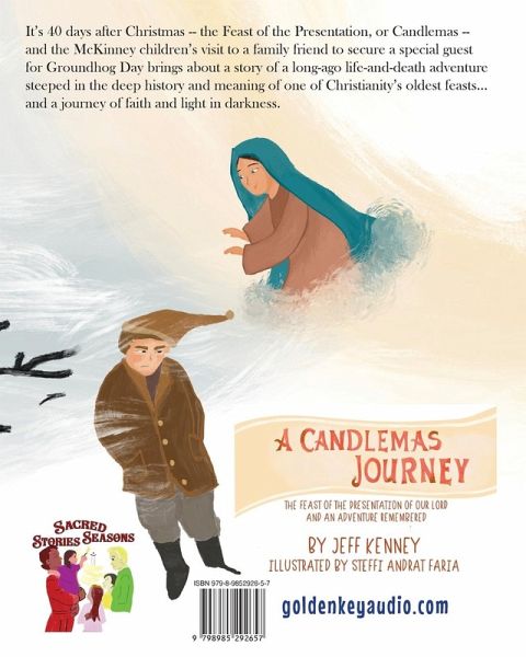 It's 40 days after Christmas -- the Feast of the Presentation, or Candlemas -- and the McKinney children's visit to a family friend to secure a special guest for Groundhog Day brings about a story of a long-ago life-and-death adventure steeped in the deep history and meaning of one of Christianity's oldest feasts...and a journey of faith and light in darkness. "A Candlemas Journey" features the folk art style of Steffi Andrat Faria and the storytelling of Jeff Kenney to weave a tale combining adventure and intrigue with heritage, history, faith, and festivity. This book is part of the "Sacred Stories Sacred Seasons" series of picture books aimed at artful storytelling towards recovering the beauty and joy of ancient Christian feasts and festivals.