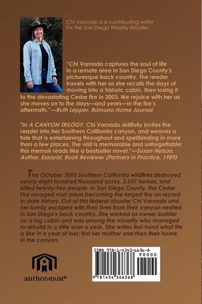 The October 2003 Southern California wildfires destroyed nearly eight hundred thousand acres, 3,657 homes, and killed twenty-two people. In San Diego County, the Cedar Fire ravaged vast areas becoming the largest fire on the record in state history. Out of this federal disaster Chi Varnado and her family escaped with their lives from their canyon nestled in San Diego's back country. She worked as owner-builder on a log cabin and was among the minority who managed to rebuild in a little over a year. She writes first-hand what life is like in a year of loss: first her mother and then their home in the canyon.