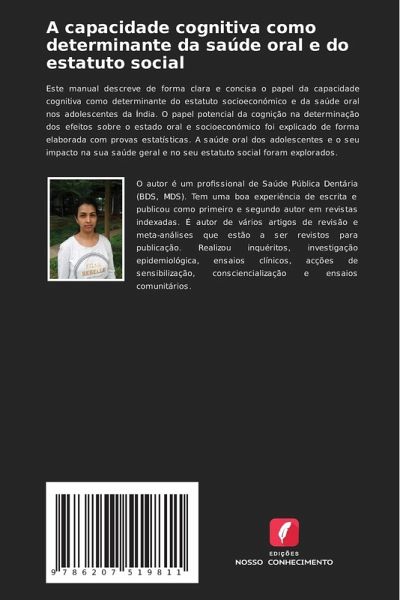 Este manual descreve de forma clara e concisa o papel da capacidade cognitiva como determinante do estatuto socioeconómico e da saúde oral nos adolescentes da Índia. O papel potencial da cognição na determinação dos efeitos sobre o estado oral e socioeconómico foi explicado de forma elaborada com provas estatísticas. A saúde oral dos adolescentes e o seu impacto na sua saúde geral e no seu estatuto social foram explorados.