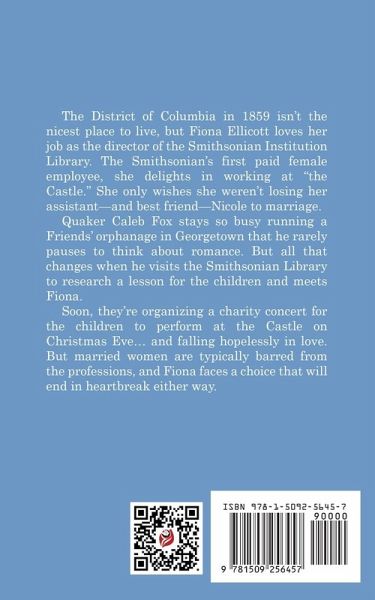 The District of Columbia in 1859 isn't the nicest place to live, but Fiona Ellicott loves her job as the director of the Smithsonian Institution Library. The Smithsonian's first paid female employee, she delights in working at "the Castle." She only wishes she weren't losing her assistant-and best friend-Nicole to marriage. Quaker Caleb Fox stays so busy running a Friends' orphanage in Georgetown that he rarely pauses to think about romance. But all that changes when he visits the Smithsonian Library to research a lesson for the children and meets Fiona. Soon, they're organizing a charity concert for the children to perform at the Castle on Christmas Eve... and falling hopelessly in love. But married women are typically barred from the professions, and Fiona faces a choice that will end in heartbreak either way.