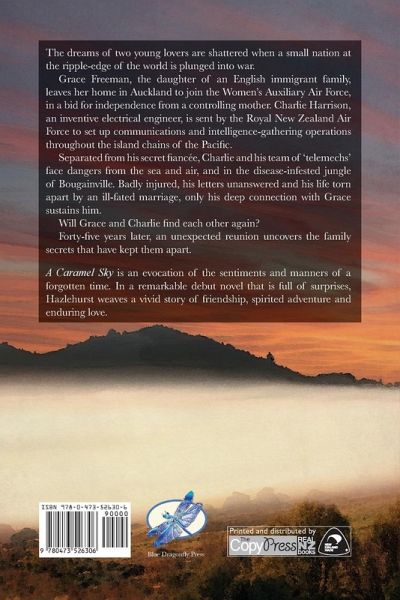 The dreams of two young lovers are shattered when a small nation at the ripple-edge of the world is plunged into war. Grace Freeman, the daughter of an English immigrant family, leaves her home in Auckland to join the Women's Auxiliary Air Force, in a bid for independence from a controlling mother. Charlie Harrison, an inventive electrical engineer, is sent by the Royal New Zealand Air Force to set up communications and intelligence-gathering operations throughout the island chains of the Pacific. Separated from his secret fiancée, Charlie and his team of 'telemechs' face dangers from the sea and air, and in the disease-infested jungle of Bougainville. Badly injured, his letters unanswered and his life torn apart by an ill-fated marriage, only his deep connection with Grace sustains him. Will Grace and Charlie find each other again? Forty-five years later, an unexpected reunion uncovers the family secrets that have kept them apart. A Caramel Sky is an evocation of the sentiments and manners of a forgotten time. In a remarkable debut novel that is full of surprises, Hazlehurst weaves a vivid story of friendship, spirited adventure and enduring love.