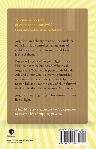 Jorge lives in a shanty town on the outskirts of Paris. Bill, a controller, has an army of child thieves at his command-and Jorge is one of them. But soon Jorge faces an even bigger threat. His home is to be bulldozed. Where will Jorge sleep? What will happen to his friends, Ada and Gino? Could a burgeoning friendship with Australian chef, Sticky-Ricky, help Jorge to stop Bill and save the army of child-thieves? And will he do it before he loses Ada forever? Jorge can't keep fighting to live-now he must live to fight. A harrowing, humbling story about one boy's desperation to escape a life of crippling poverty.