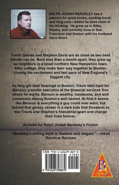 Travis Gaines and Stephen Davis are as close as two best friends can be. Born less than a month apart, they grew up as neighbors in a small northern New Hampshire town. After college, they make their way together to Boston, craving the excitement and fast pace of New England’s biggest city. As they get their bearings in Boston, Travis falls hard for Benson, a senior executive at the financial services firm where he works. Benson is wealthy, handsome, and well connected among Boston’s well heeled. At first it seems like Benson is everything a guy could ever want, but behind that glossy veneer is a dark side that threatens to tear Travis and Stephen’s friendship apart and change their lives forever.