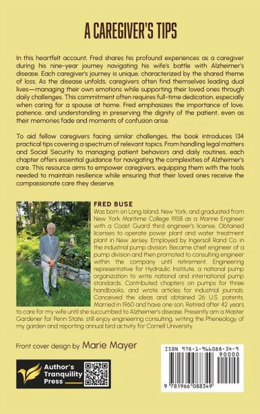 In this heartfelt account, the author shares his profound experiences as a caregiver during his nine-year journey navigating his wife's battle with Alzheimer's disease. Each caregiver's journey is unique, characterized by the shared theme of loss. As the disease unfolds, caregivers often find themselves leading dual lives-managing their own emotions while supporting their loved ones through daily challenges. This commitment often requires full-time dedication, especially when caring for a spouse at home. The author emphasizes the importance of love, patience, and understanding in preserving the dignity of the patient, even as their memories fade and moments of confusion arise.To aid fellow caregivers facing similar challenges, the book introduces 134 practical tips covering a spectrum of relevant topics. From handling legal matters and Social Security to managing patient behaviors and daily routines, each chapter offers essential guidance for navigating the complexities of Alzheimer's care. This resource aims to empower caregivers, equipping them with the tools needed to maintain resilience while ensuring that their loved ones receive the compassionate care they deserve.