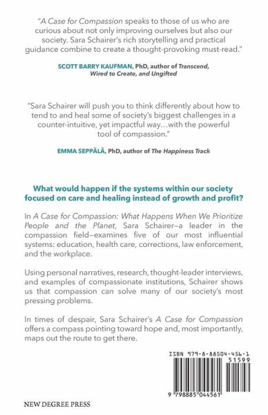 "This clear-eyed vision for a more compassionate world will inspire you to take action in your own community." -Kelly McGonigal, PhD, author of The Willpower Instinct What would happen if the systems within our society focused on care and healing instead of growth and profit? In A Case for Compassion: What Happens When We Prioritize People and the Planet, Sara Schairer-a leader in the compassion field-examines five of our most influential systems: education, health care, corrections, law enforcement, and the workplace. Using personal narratives, research, thought-leader interviews, and examples of compassionate institutions, Schairer shows us that compassion can solve many of our society's most pressing problems. You'll read inspiring stories about examples of compassion, including:A neurosurgeon who bucks the system in order to take as much time as necessary with each patient. A correctional system with a goal of creating good neighbors. A police chief who encourages self-compassion, compassion, and mindfulness among his officers. A bakery that bakes brownies in order to hire people, not the other way around. In times of despair, Sara Schairer's A Case for Compassion offers a compass pointing toward hope and, most importantly, maps out the route to get there.