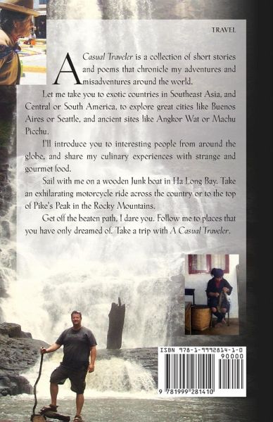A collection of short stories and poems that chronicle Edmond Gagnon's adventures and misadventures around the world. Let him take you to exotic countries in Southeast Asia and Central of South America, to explore great cities like Buenos Aires or Seattle, and ancient sites like Angkor Wat or Machu Picchu. He'll introduce you to interesting people from around the globe, and share culinary experiences with strange and gourmet food. Sail with him on a wooden Junk boat in HaLong Bay. Take an exhilarating motorcycle ride across the country or to the top of Pikes Peak in the Rocky Mountains. Get off the beaten path, he dares you. Follow Edmond Gagnon to places that you have only dreamed of. Take a trip with A Casual Traveler.