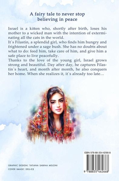 Israel is an orphaned kitten adopted by a girl named Filastin, who provides him with shelter, food, and lots of love. However, month after month, Israel takes over every inch of the house, relegating Filastin to a few uncomfortable corners. One day, the girl decides to rebel and engages in a battle with the feline, only to be defeated. It will only be thanks to the intervention of three women "experts in complicated solutions" (Africa, Europe, and America) that Filastin and Israel manage to reach an agreement for peaceful coexistence. A fairy tale to never stop believing in peace, Israel is a kitten who, shortly after birth, loses his mother to a wicked man with the intention of exterminating all the cats in the world. It's Filastin, a splendid girl, who finds him hungry and frightened under a sage bush. She has no doubts about what to do: feed him, take care of him, and give him a safe place to live peacefully. Thanks to the love of the young girl, Israel grows strong and beautiful. Day after day, he captures Filastin's heart, and month after month, he also conquers her home. When she realizes it, it's already too late...