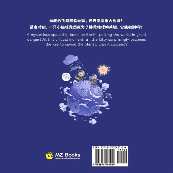 A mysterious spaceship lands on Earth, putting the world in great danger! At this critical moment, a little kitty surprisingly becomes the key to saving the planet. Can it succeed? This picture book presents an engaging story bilingually in both Chinese and English. Through beautiful illustrations and a humorous plot, it enables children to understand the importance of love and caring for each other while laughing along. By the end of the book, young readers will have learned an important lesson about the power of kindness and the importance of understanding and helping those in need, regardless of how different they may seem. This delightful picture book not only entertains but also imparts valuable life lessons, making it a wonderful addition to any child's library.