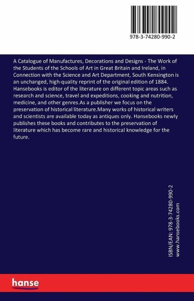 A Catalogue of Manufactures, Decorations and Designs - The Work of the Students of the Schools of Art in Great Britain and Ireland, in Connection with the Science and Art Department, South Kensington is an unchanged, high-quality reprint of the original edition of 1884.