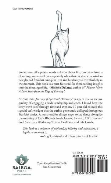 Sometimes, all a person needs to know about life, can come from a charming, know-it-all cat – especially when that cat shares the wisdom he’s gleaned from his nine-plus lives and his ability to live blissfully in the moment. This book is a purr-fect read for those seeking insights into the meaning of life. - Michele DeLuca, author of "Forever More: A Love Story from the Edge of Eternity". "A Cat’s Tale: Journey of Spiritual Discovery" is a gem due to its rare quality of engaging a wide readership audience. I loved how the story wove itself through time and even my 10 year old enjoyed this special cat’s wisdom that the author generously dolloped throughout Frankie’s antics. A must read for all ages eager to tap dance alongside the meaning of life! - Rhonda Bartholomew, Licensed HYL Teacher/Soul Sanctuary Workshop/Retreat Facilitator and Life Coach. This book is a mixture of profundity, hilarity and education. I highly recommend it. —Angel, a friend and fellow traveler of Frankie