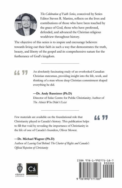 SIR OLIVER MOWAT served as a Christian lawyer, politician, premier of Ontario, and was one of the Fathers of Canadian Confederation. He was known by all his contemporaries as being a godly man who sought to do what was right in the sight of God, and who believed passionately in the proclamation and defense of the gospel, and the administration of its graces. Near the end of his life, he published two works on Christianity & its Evidences and Christianity & its Influence as his contributions to the development of a holistic Christian apologetic. The Celebration of Faith Series, conceived by Series Editor Steven R. Martins, reflects on the lives and contributions of those who have been touched by the grace of God, those who have professed, defended and advanced the Christian religious worldview throughout history. The objective of this series is to inspire and encourage grace-bought believers towards living out their faith in such a way that demonstrates the truth, beauty and liberty of the gospel and its comprehensive nature for the furtherance of God’s kingdom.