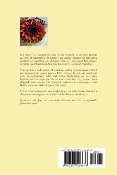 Just when you thought you had to say goodbye to all your favorite desserts, A Celebration of Gluten Free Baking presents an innovative selection of irresistible and delicious corn, soy and gluten free recipes, covering everything from American favorites to European specialties. You will find a wide varity of tempting, healthy options, made without any conventional sugars ranging from cookies, breads and traditional pies, to sophisticated cakes and tortes. Highlighted are everyone's favorites such as apple pie, cheese cake, chocolate chip cookies, right along side such delicacies as marzipan, traditional German gingerbread, British tea scones and European fruit tortes. For all those interested in raw food options, the authors have included a chapter showcasing several of their family's favorite raw desserts. Rediscover the joys of home-made desserts with this indispensable gluten free guide!