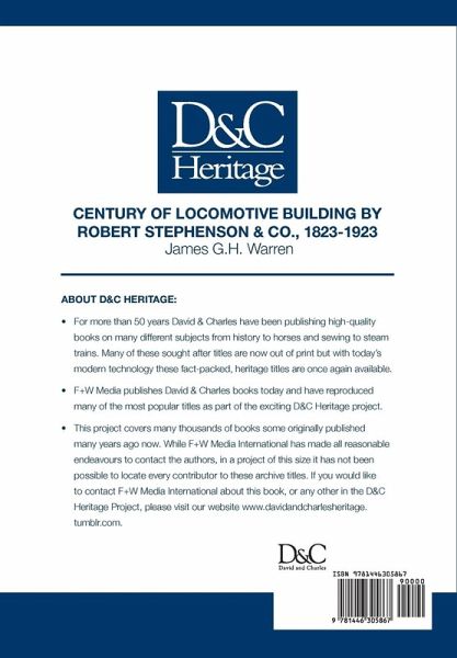 This concise look at the locomotive company Robert Stephenson & Co from 1823 to 1923 by J. G. Warren provides a unique history of the locomotive industry as it came to be built. He includes details such as letters, diagrams, photos, pictures and tables to give a full understanding of that century of progression.