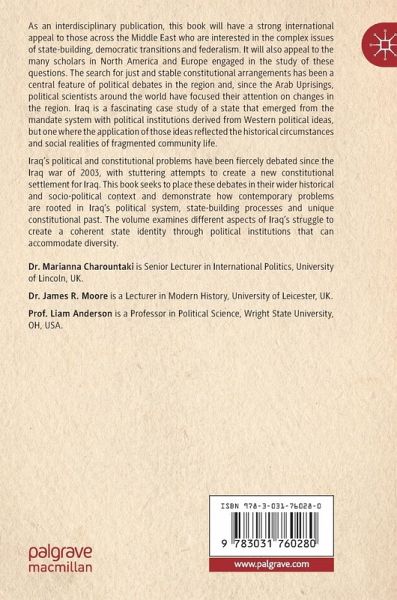 Iraq's political and constitutional problems have been fiercely debated since the Iraq war of 2003, with stuttering attempts to create a new constitutional settlement for Iraq. This book seeks to place these debates in their wider historical and socio-political context and demonstrate how contemporary problems are rooted in Iraq's political system, state-building processes and unique constitutional past. The volume examines different aspects of Iraq's struggle to create a coherent state identity through political institutions that can accommodate diversity. This is a topical work with extensive primary-source-based empirical research, alongside the conceptual and theoretical insights offered. Its different approach will be valuable to a variety of audiences, ranging from scholars and students of international politics/relations and law, diplomatic history, and the Middle East, to policymakers and, indeed, beyond to a broader audience of informed non-specialist readers.